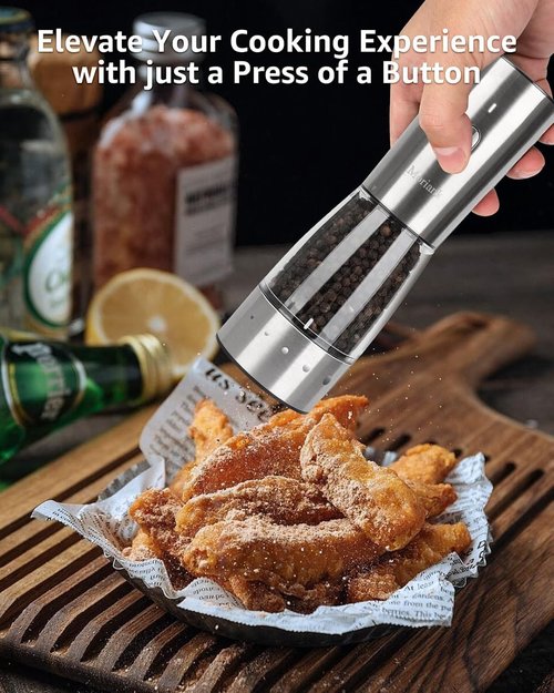 - 𝗦𝗹𝗲𝗲𝗸 𝗦𝘁𝗮𝗶𝗻𝗹𝗲𝘀𝘀 𝗦𝘁𝗲𝗲𝗹 𝗖𝗿𝗮𝗳𝘁𝘀𝗺𝗮𝗻𝘀𝗵𝗶𝗽: Our electric salt and pepper grinder set is not just a cooking tool but a piece of art. Made with high-quality stainless steel, it boasts durability and beauty