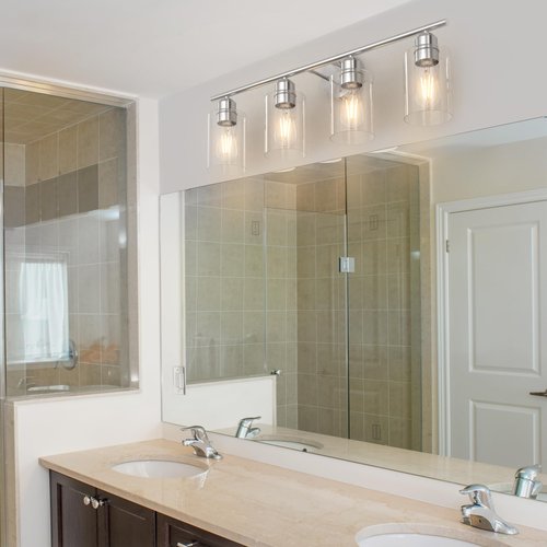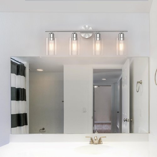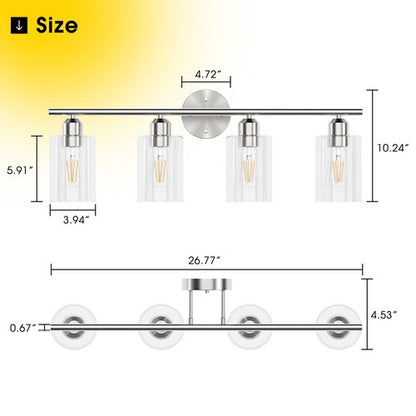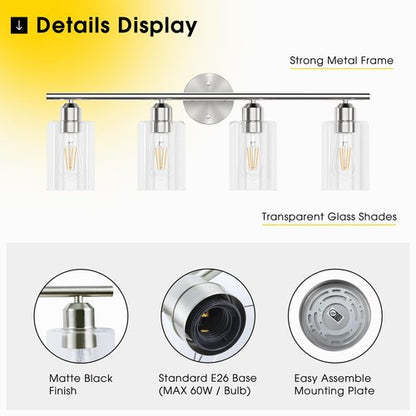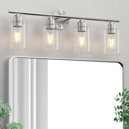 Espird Bathroom Vanity Light Fixtures Brushed Nickel,4 Lights Rustic Farmhouse Vanity Bar Lighting Over Mirror Modern Industrial Wall Sconces Lamp with Cylinder Glass Shade