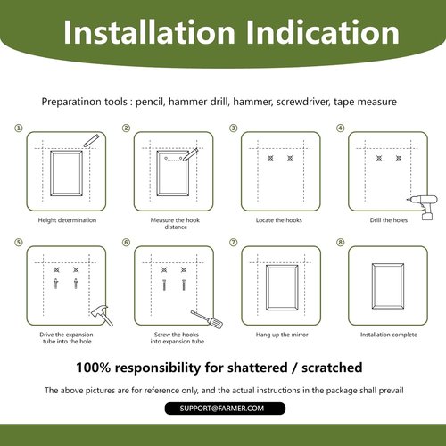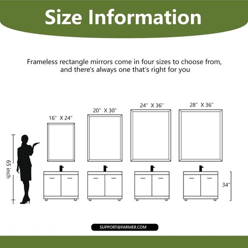 - 【Worry-Free Shopping Experience】After a comprehensive study, we carried out drop, impact and other tests, and finally determined the anti-drop packaging of the frameless wall mirror, and make sure that possible damage during transportation is minimized. If you have any questions, feel free to contact us and we will give you a satisfactory solution.