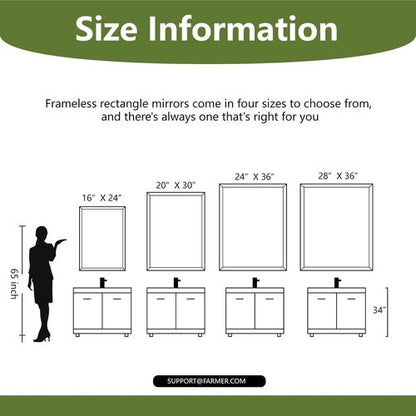 FARMER Rectangle Frameless Mirror, 22x30 inch Rectangle Mirror with 1" Beveled Edge, Beveled Bathroom Mirror for Wall, Vanity, Bedroom, Living Room