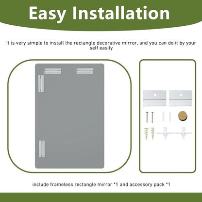 - 【Easy to Install Accessories】 It is very simple to install the rectangle mirrors for wall, and you can do it by your self easily, and the included accessories are sturdy enough to support the weight of the mirror and make sure that the mirror is even stronger. The back of the beveled mirror uses a shatter-proof film to protect you and your family.