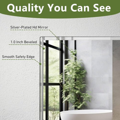 - 【Safe & Delicate Beveled Edges】The frameless rectangle mirror has a simple and modern design style, the 1” beveled edge has been polished to eliminate the possibility of sharp edges causing harm. The graceful arc echoes the shape of the rectangular mirror, which is a great combination of modern and classic, but also the perfect choice for decorating the room.