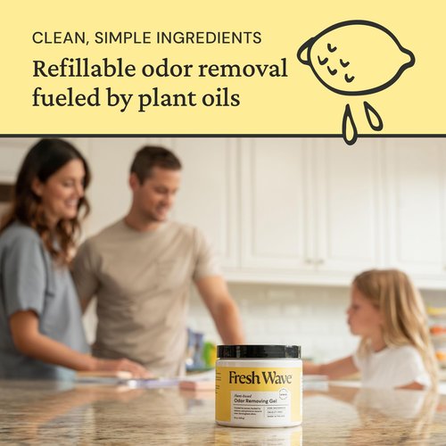 - LEMON ODOR ELIMINATOR FOR HOME: Fresh Wave Gel is an odor absorber and neutralizer for your kitchen, bathroom, garages, pet areas, car, or any other room. The lemon oil helps eliminate odors from cooking, trash, paint, common home odors, and more.