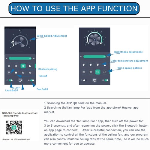 - Ceiling Fan with Remote/App Control: Remote/App control has all the features you need, including 6 speed wind speed, 3 color temperature variable light, easy to adapt to any scene needs, 2 hours timing off, separate off lights or fans, etc. It is an ideal replacement for traditional fan lights