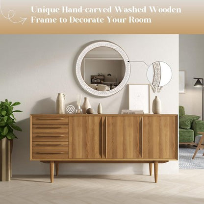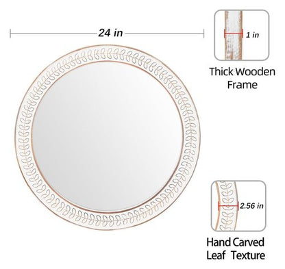 fuxuiwy 24 inch Round Rustic Wooden Mirrors, Distressed Circle Mirror for Bathroom, Bedroom, Living Room, Entryway, Fireplace, Hall