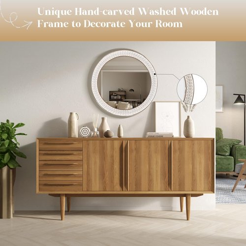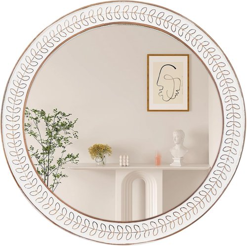 - Large Round Mirror: This farmhouse mirror design with 24 inches is the ideal size for a living room. Whether moving into a new home or looking for a gift, make an accent statement in any room with a stylish and decorative modern and industrial piece. This wooden circle mirror can be your best choice.
