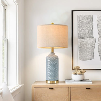 • Modern Design Stylish Blue table lamp perfect for any modern bedroom or living room decor.Ideal as a bedside lamp for reading or creating a cozy ambiance.The set of 2 lamps for bedrooms or living rooms will bring a cohesive and upscale look to your interior