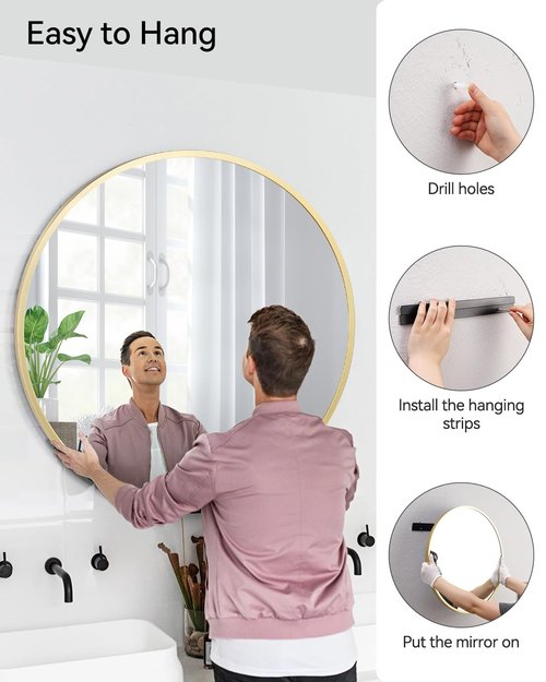 - 5. Easy & Quick Installation: Equipped with hanging strips for easy installation, this bathroom mirror can be securely installed within just 3 minutes. We value your time and ensure you can enjoy your mirror without any hassle.