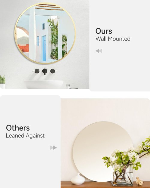 - 2. Versatile Size Options: With six different sizes ranging from 18 to 36 inches, the IDEALHOUSE Round Mirror collection offers versatility to suit every room and style. Find the perfect round companion to accentuate your living room, bathroom, nursery, or vanity.