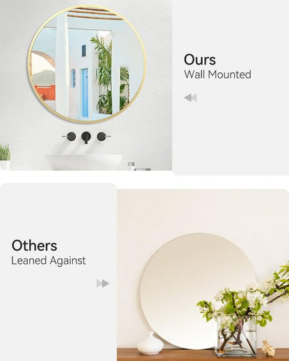 - 4. High Quality & Distortion-Free: Crafted with 5mm polished glass and sterling silver backing, our round wall mirror is superior to the conventional 3mm mirrors. It ensures zero distortion and provides a true reflection, allowing you to see the most pristine and perfect version of yourself.