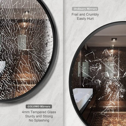 GOLOMO 30 Inch Matte Black Round Mirror, Black Circle Mirror for Wall, Round Bathroom Vanity Mirror for Farmhouse Entryway, Home Decor, Anti-Rust, Shatterproof