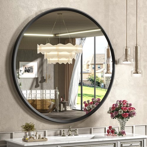 - 【Matte Black Frame with Beveled Border】GOLOMO black round mirror are surrounded by matte alluminum alloy frame which is designed with beveled border. Looks more advanced than ordinary matte black framed mirrors. It feels smoother and looks more vantage with its 1 inch frame depth which is offering in a typically artful way.