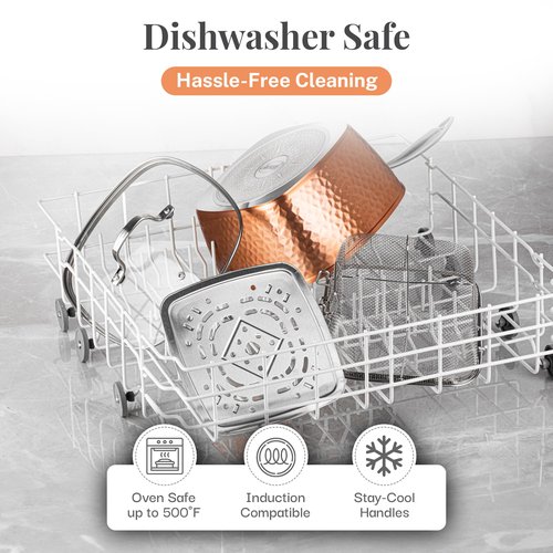 - VERSATILE & DISHWASHER SAFE: This Frying Pan is compatible with all stovetops besides induction and is oven safe up to 500 degrees, allowing you to cook on any gas, ceramic, electric, or halogen stovetop or in the oven. After use, simply throw the cookware into the dishwasher for a quick and effortless cleanup.