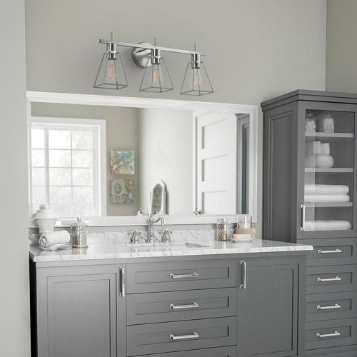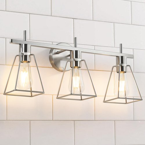 HAHZT Industrial Bathroom Vanity Lights: 3-Lights Silver Brushed Nickel Vintage Metal Cage Wall Lamp - Rustic Farmhouse Light Fixture Over Mirrors Cabinet for Bath Hallway