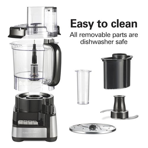 Hamilton Beach Stack & Snap Food Processor and Vegetable Chopper, BPA Free, Stainless Steel Blades, 12 Cup Bowl, 2-Speed 450 Watt Motor, Black (70725A)