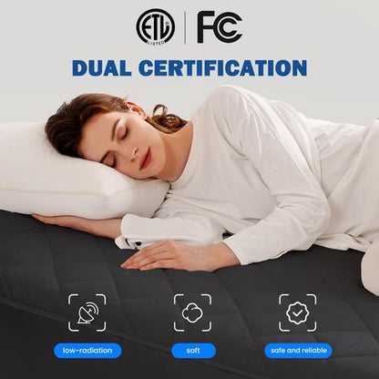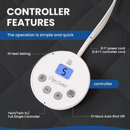 - 【Size & Function】Full: 54" x 75"+18" / single controller / 6 FT power cord / 12.8 FT controller cord / 10 heat setting / 1-12 Hours Auto Shut Off .