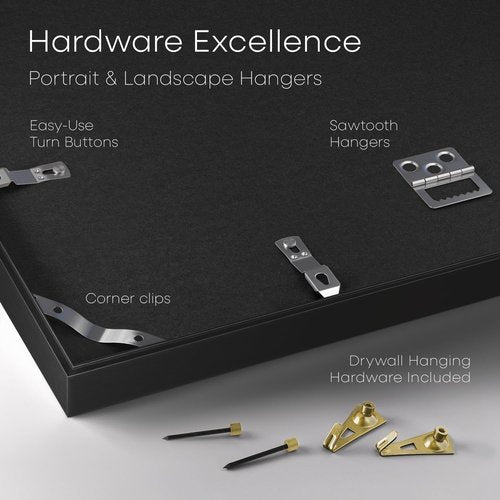 - Easy to hang! Sawtooth hangers on the back of the frame and wall hook provided allow for quick and easy mounting in portrait or landscape display. Back loader clips keep your images in place- just swivel side to side when you wish to take your print out!
