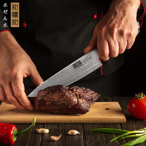 - PROFESSIONAL HAND-POLISHED DAMASCUS KNIFE - HOSHANHO blade of japanese chef knife is expertly crafted by VG-10 steel core, enhanced the characteristics of high hardness 62 HRC and wear-resistant. Hand-polished from damascus steel to achieve the best balance of hardness, durability, rust resistance and sharpness