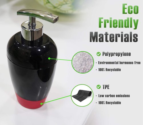 HOUSIO Eco-Friendly Bathroom Accessories Set,6Pcs Gift Set Toothbrush Holder,Tumbler,Lotion Dispenser,Soap Dish,Toilet Brush,Trash Bin Set (Black/Red)