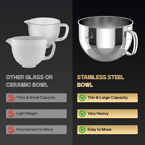 - Crafted from high-quality 304 stainless steel, for kitchenaid mixer bowl is both sturdy and durable. Its rust-resistant properties ensure it can withstand the test of time and the rigors of frequent mixing, making it a dependable addition to your kitchen arsenal.