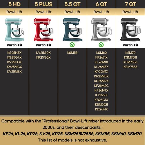 - Transform your bowls for kitchenaid mixers designed for KV25MEX, KSM60, KT2651X, KB26G1X, KP2671X, KL26M1X, KL26M8X, KP26M1X, KP26M8X, KP26M9X, KP26N9X, KSM6521, KD2661, KSM70, KSM7581, KSM7586, and KSM7588. With robust locking mechanisms on both ends, you can mix with confidence, knowing that the kitchen aid bowls for mixer will stay securely in place, eliminating any worries about shaking or tilting during the mixing process. Your ingredients' safety and the stability of operation are our top priorities.