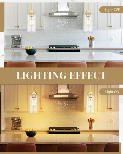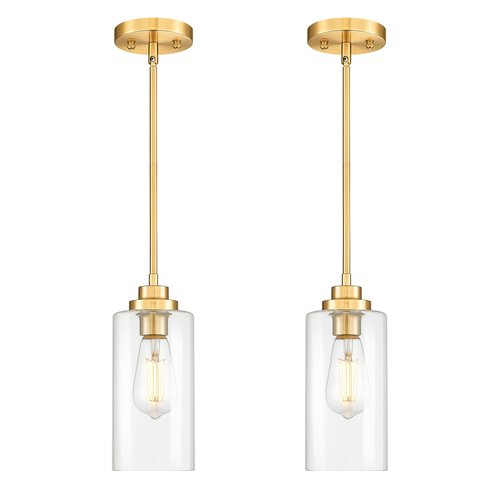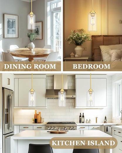 HUNEASON Pendant Light Fixtures, Pendant Lighting for Kitchen Island, Brushed Gold Clear Glass, Farmhouse Island Lights for Kitchen Dining Room Bedroom, 2 Pack