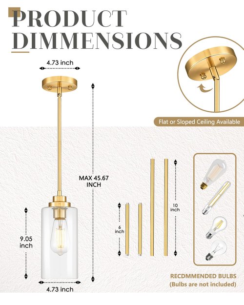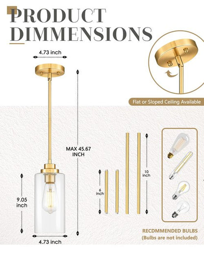 - Premium Materials: Crafted from durable metal and a sleek cylindrical glass shade, this pendant light fixture combines modern style with timeless elegance, making it a durable and stylish addition to your home