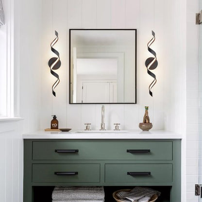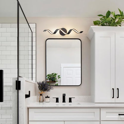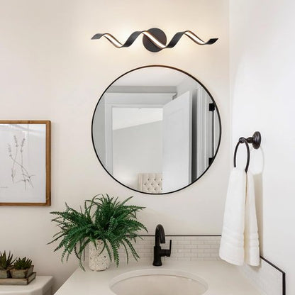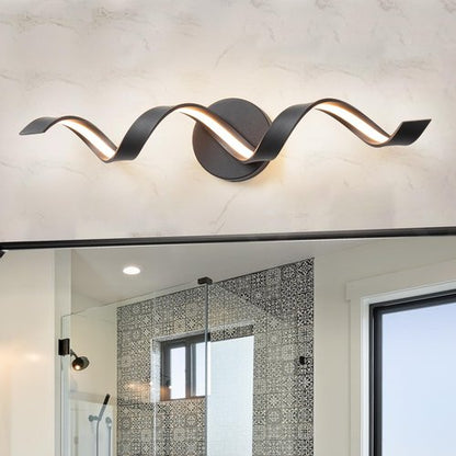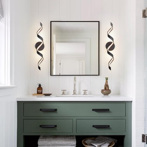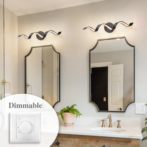 HUOKU Dimmable Modern Bathroom Vanity Lights, 24 inch Spiral Design Black LED Bathroom Wall Light Fixtures Over Mirror for Living Room Bedroom 3000K Warm Light