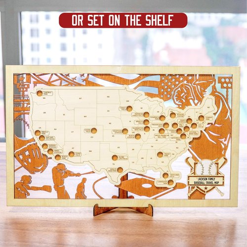 - ⚾ Personalized Baseball Stadium Map: Unveil the beauty of baseball with our wooden map featuring intricate details of stadiums. Customize it with your name and enhance the experience with included accessories like baseball pins, a holder, and hangers, making it a unique and personalized masterpiece.
