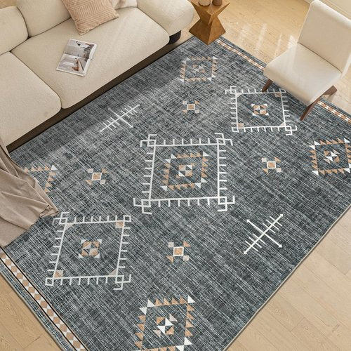 ILANGO Area Rug 5'x7' for Living Room Bedroom Washable Moroccan Boho Rugs for High Traffic Area Non Slip & Non-Shedding Rugs Fade Resistant Carpet for Kitchen Office (Dark Grey)