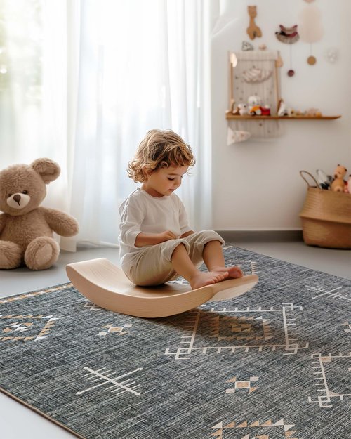 - [Non-Slip & Ultra Soft] The non-slip backing keeps the area rug in place well, it does not slide or slip when kids or pets play on it. The soft surface makes your barefoot feel great when step on it.