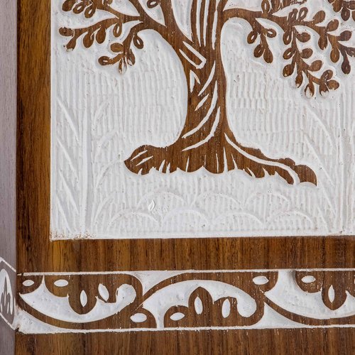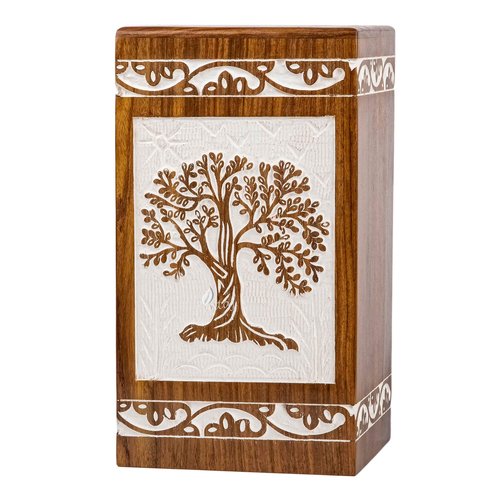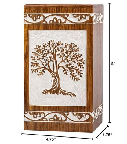 INTAJ Rustic Tree of Life Urn - Rosewood, Antique White, 250 Cubic Inch, Memorial Urn for Ashes, Funeral, Cremation, Burial