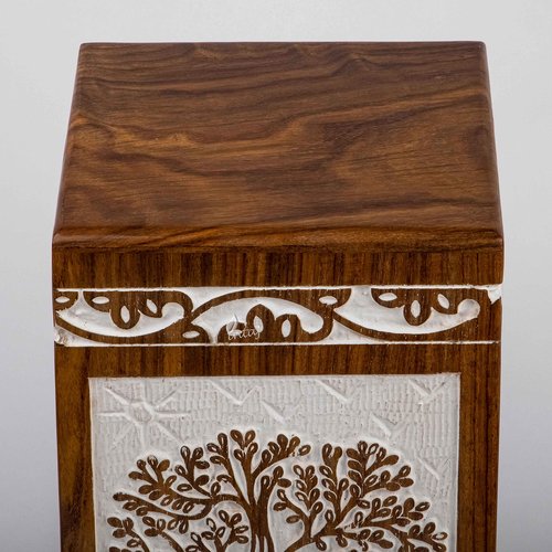 Our Funeral Cremation Urns for Ashes are crafted from Sheesham Wood (Indian Rosewood), renowned for its optimum quality. This wood features a golden to deep brown color with attractive darker streaks. It is hard, uniform, and has a medium course texture. The natural resistance to decay makes it ideal for carving and engraving.