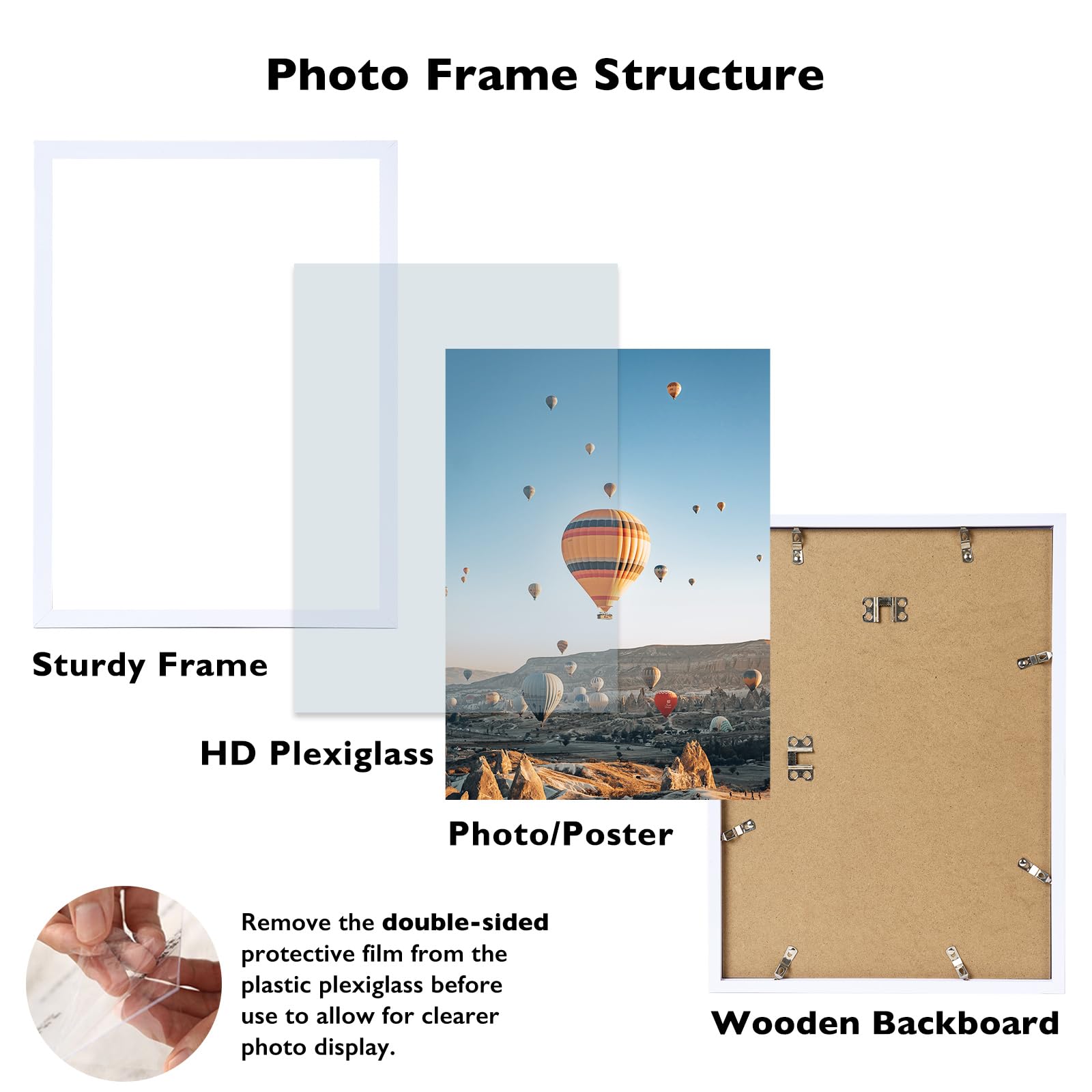 - SAFE MATERIAL: The photo frame is made of plastic, lightweight and easy to use, using safer HD plastic plexiglass instead of glass can prevent from breaking by accident. This is a safe option for those with children as you don't have to worry about injuries due to accidental glass breakage. Please remove the double-sided protective film from the plastic plexiglass before use to allow for clearer photo display.