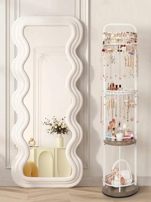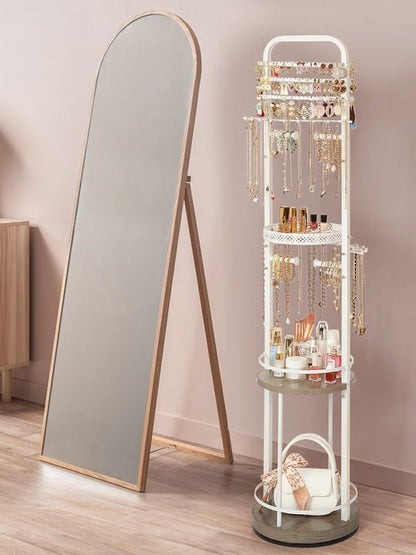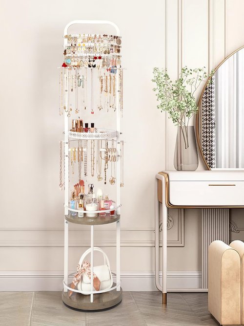 - 【Rotating Jewelry Holder Organizer】With the 360° rotating design, the jewelry holder allows your jewelry to be viewed from all angles, making it perfect for displaying and easy access to what you want. The floor jewelry display stand effectively free up your countertop spaces and keep all your jewelry and skincare products in one location.