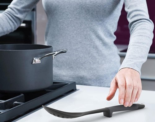 • Joseph Joseph’s Elevate kitchen utensils are designed to improve hygiene and reduce mess. Weighted handles and integrated tool rests prevent tool heads from touching the countertop when placed down.