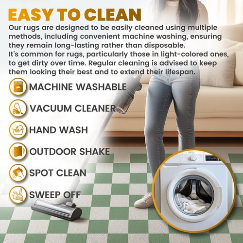 - 【FOLDABLE & MACHINE WASHABLE】The foldable design of this rug allows for easy storage without taking up much space. Any creases or resistance to laying flat are temporary. Made from high-quality, spill and stain-resistant microfiber, this rug is easy to maintain. The low-pile design prevents dirt buildup, and you can easily clean it with a broom or vacuum. Alternatively, you can machine wash the entire rug.