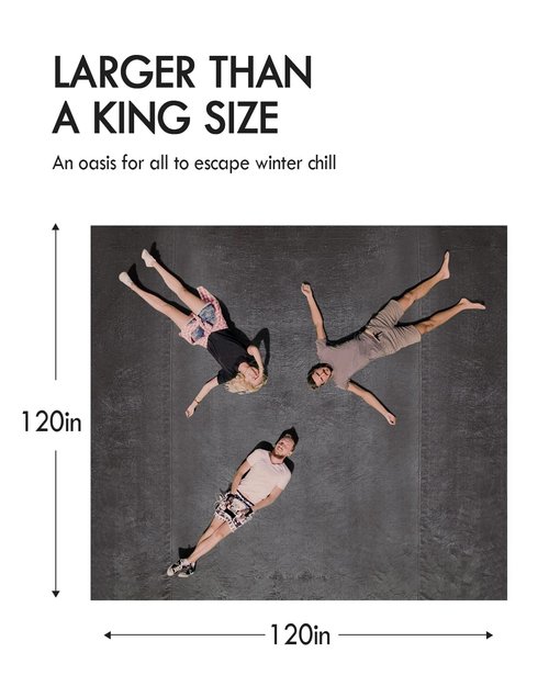 - 120" x 120" Super Size: The blanket is almost twice the size of a standard full-size blanket while still supporting machine wash. It's so huge that you can easily enjoy a cozy and happy Sunday afternoon with your family or friends snuggled under it watching a movie and your pet dozing off on it.