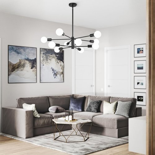 - Modern Ceiling Light Fixture - Our chandeliers are made of high quality aluminum and the outface adopt matte black plating technology, which ensures our chandeliers durable and anti-rust. This sputnik ceiling light combines modern and vintage styles, fits any home decor style, perfect for dining room, living room, bedroom, kitchen, entry, foyer and more.