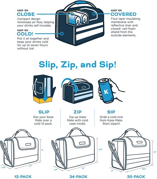 - 24 Pack Can Cooler - Holds a standard 24 pack case of 12 oz standard or slim cans or 2 stacked 12 pack cases of sodas arranged 2x6 standard cans. Whether you're enjoying a seltzer or your favorite beer, your kanga cooler is ensured to fit directly over the cold case.