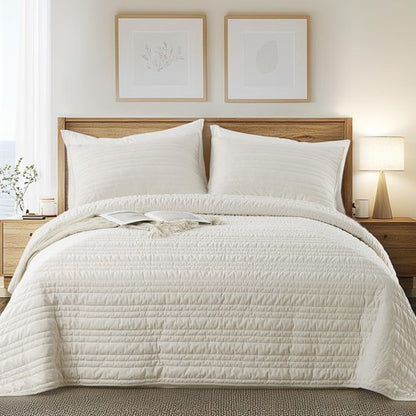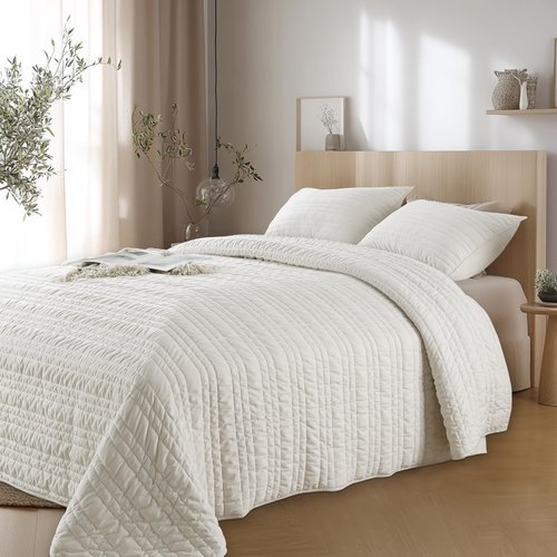 - Elegant Stitch Design: Featuring an intricate stitch pattern, quilt set add a touch of sophistication to your bedroom. The detailed stitching ensure even warm distribution while enhancing the overall aesthetic, making it a timeless addition to your decor