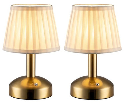 KDG Modern Cordless Small Table Lamp Set of 2, Portable LED Fabric Shade Desk Lamps, 5000mAh Rechargeable Battery Operated Lighting for Bedroom, Bar, Living Room, Dining Room, Night Light(Gold)