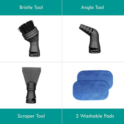 - INCLUDED TOOLS: Includes a bristle tool, angle tool, scraper tool, two washable pads, carpet slider, and water cup