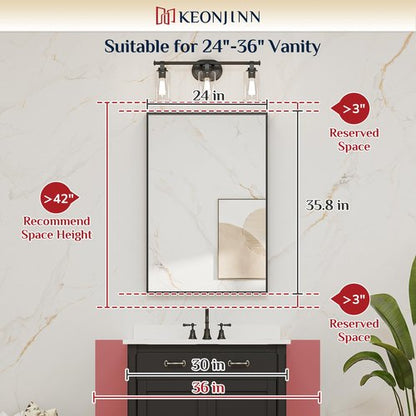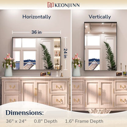 Keonjinn Black Bathroom Mirror 24 x 36 Inch Rectangular Wall Mirror Brushed Metal Frame Black Mirror Modern Farmhouse Mirror, Framed Rectangle Bathroom Mirror for Over Sink(Horizontal/Vertical)