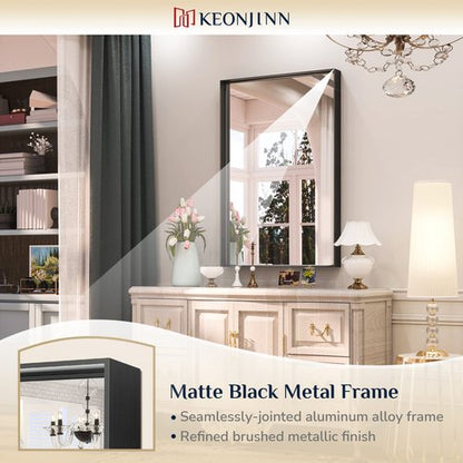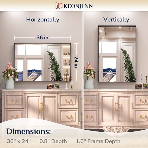 - 【Modern Design】 The rectangular wall mirror has the most chic brushed matte black finish, coming with a 1.57" depth Aluminum alloy frame. Square corner mirror features the minimalist style and able to add texture to your space. Give an instant premium upgrade to any room with Keonjinn black metal framed mirror.