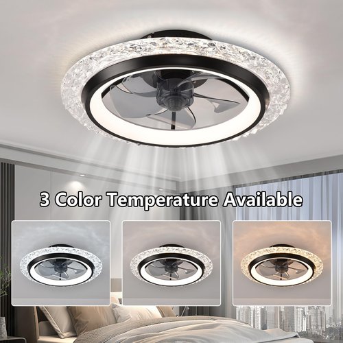 - 【Dimmable & Memory Function】This modern ceiling fan with light adopts 3-color lighting mode, which is from warm (3000k) to white (6000k) through remote control.All settings are remembered when turning off lights with remote.This bladeless ceiling fan also energy-saving dimmable ceiling lights make life easy and comfortable.