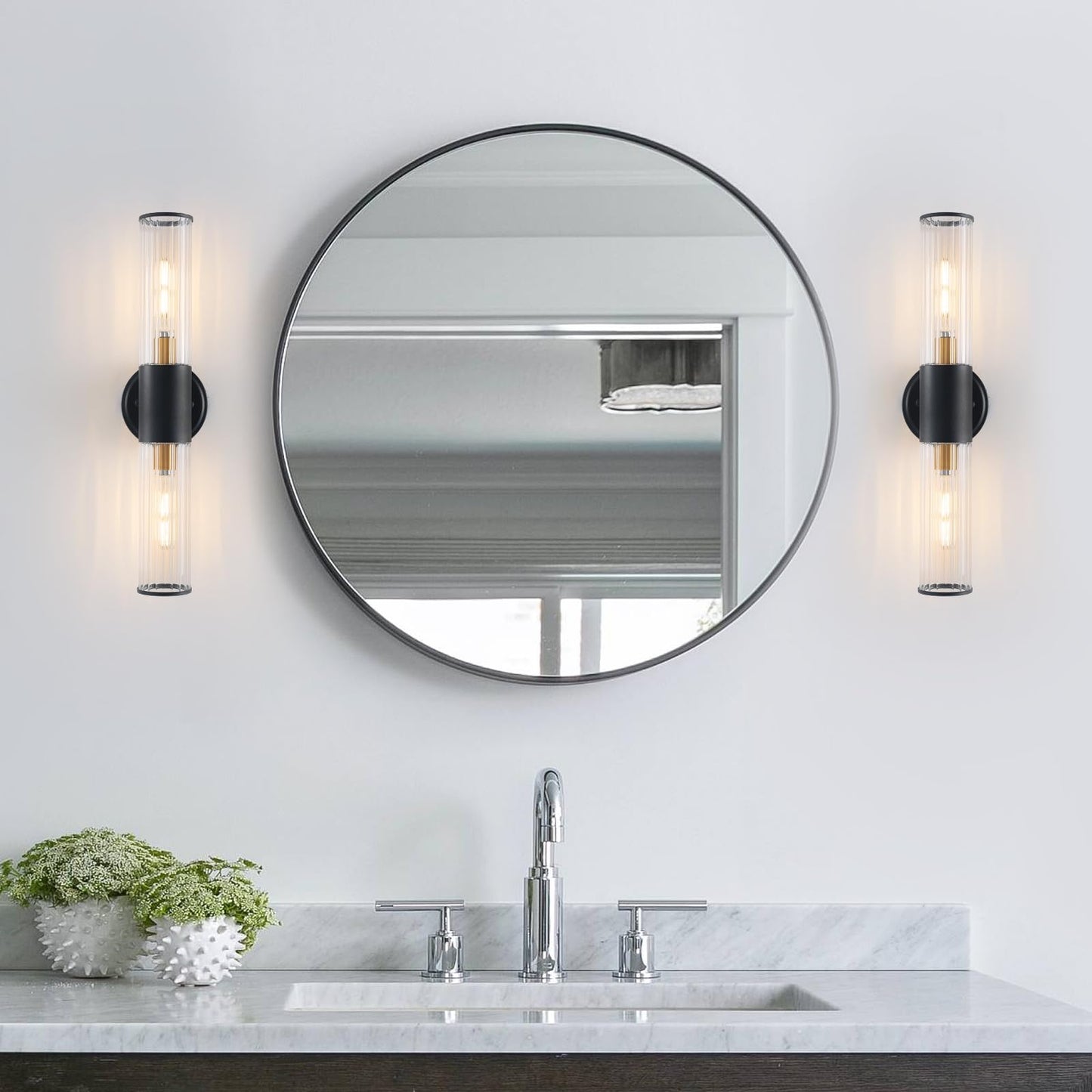 - 🌺[Easy to Install and Wide Application]: This wall light sconces is designed to fit the US standard junction box, making it easy to assemble. It only takes one person about 7 minutes to complete the wall lamps installation.Black wall sconce is perfect for bathroom, vanity, kitchen, powder room, dining room, dressing table, mirror cabinets, vanity table, powder room, living room, foyer, hallway etc.