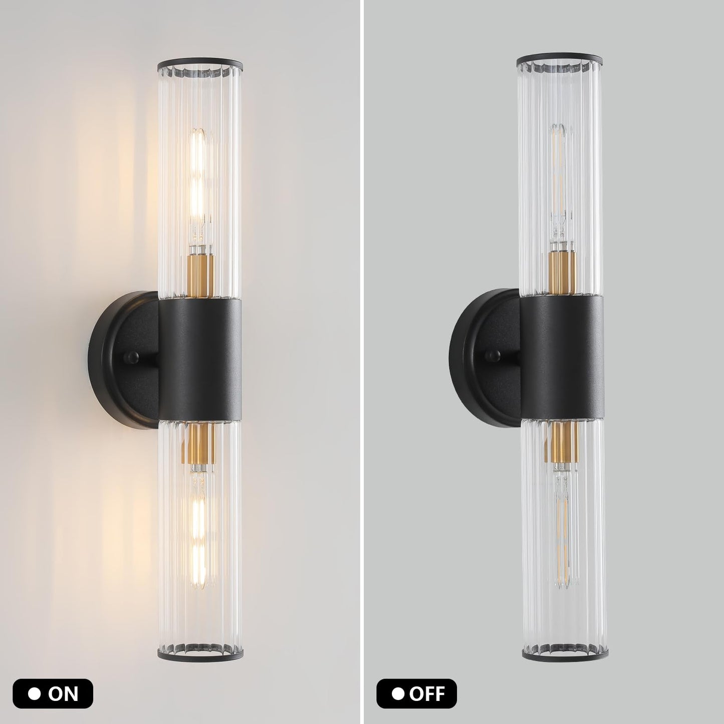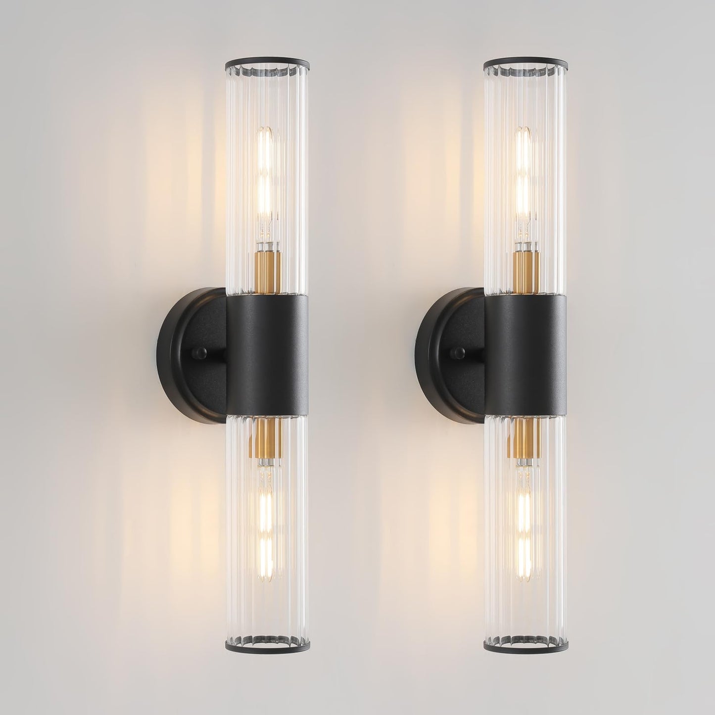 KUZZULL Wall Sconces Set of Two Black and Gold Lamp with Stripped Glass Shade Lighting Light Fixtures Decor 2 Scones,Wall Lights Sconces,28in