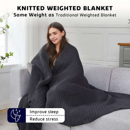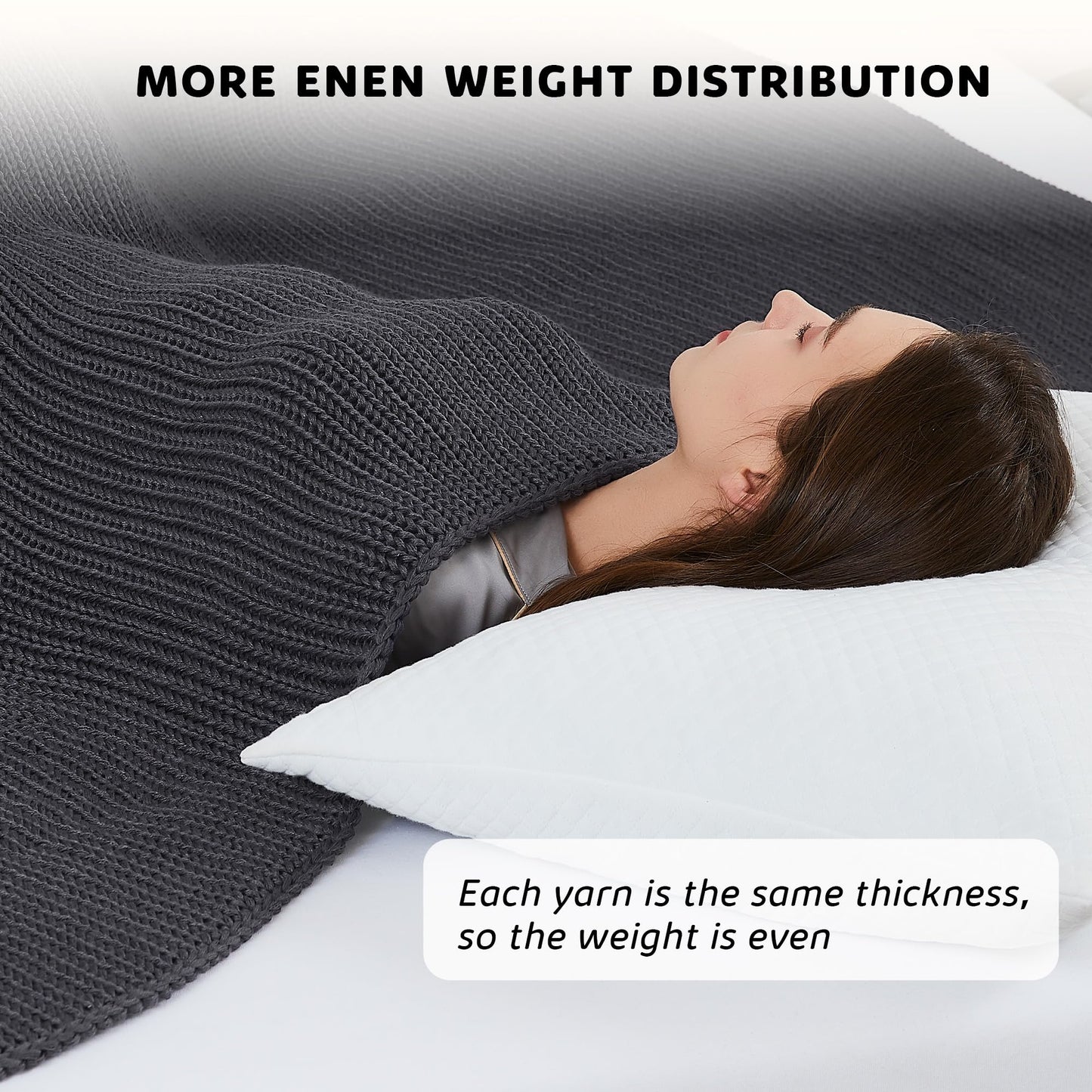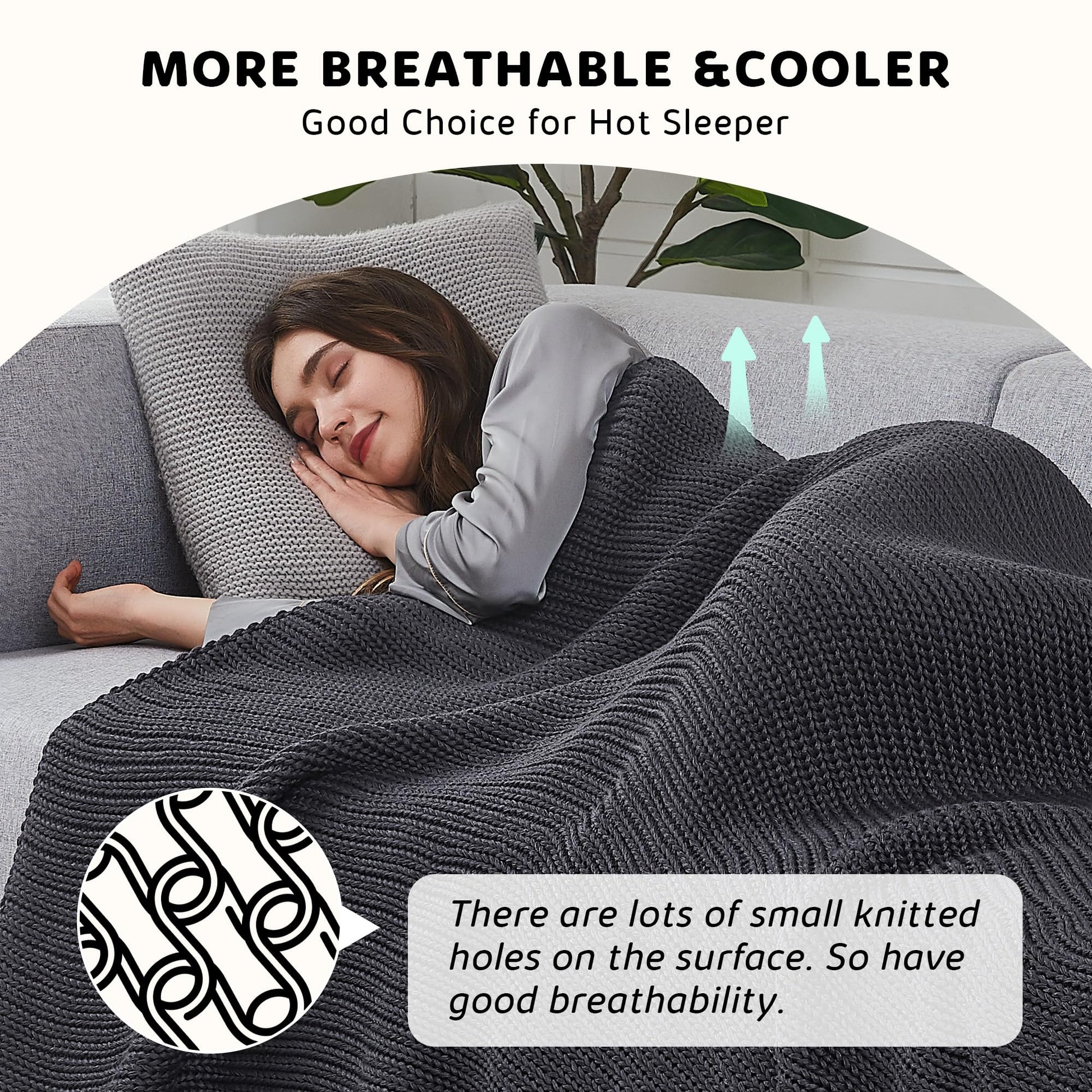 - MORE BREATHABLE: Knitted weighted blankets are more breathable because there are many small knitted holes on the surface of the blanket through which air can circulate directly. You can enjoy the same weighted feeling while staying dry and comfortable