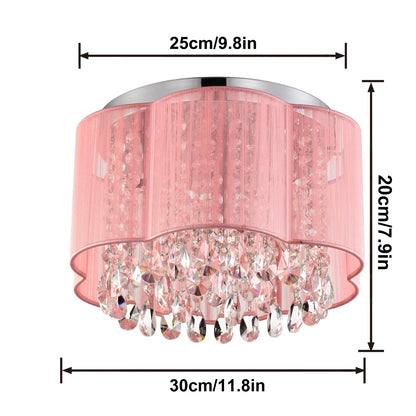 LaLuLa Pink Crystal Chandelier Ceiling Light - 3-Light Flush Mount with Handmade Flower Lampshade, Small Modern Chandelier for Girls' Bedroom, Nursery, Closet, or Kids Room Lighting Fixture
